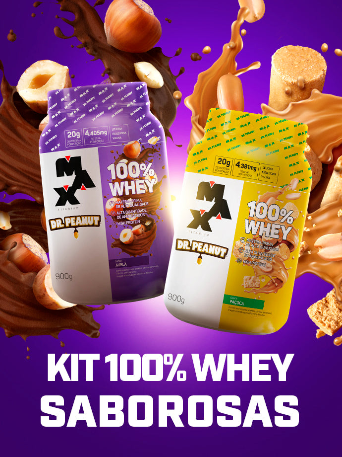 O Kit 100% Whey Saborosas foi criado para quem quer aliar performance e sabor na suplementação diária. Este combo inclui 100% Whey Paçoca e 100% Whey Avelã, duas opções deliciosas desenvolvidas pela Max Titanium em colaboração com a Dr. Peanut, conhecida pelos seus sabores irresistíveis e qualidade incomparável.