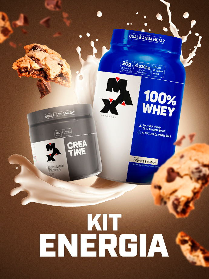 O Kit Energia é a combinação perfeita para quem quer maximizar o desempenho nos treinos e acelerar a recuperação muscular. Este combo inclui 100% Whey Cookies and Cream e Creatina 300g, dois suplementos de alta qualidade que vão impulsionar os teus resultados.